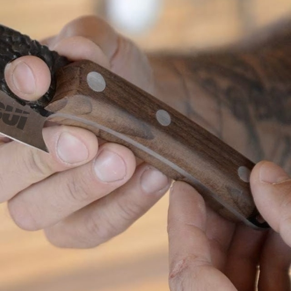 Uma faca deve ser uma extensão da sua mão. A HISUI possui um cabo lindamente trabalhado em madeira de faia, oferecendo uma pegada firme mas confortável para cozinhar sem fadiga. A sua textura natural evita escorregamentos, tornando-a ideal para longas preparações.